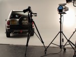A few minutes later John Carroll arrived and after introductions we got down to the business of positioning the Freelander in the studio. Once the roller shutter door was rolled up it revealed a large clean white space with rounded corners into which the Freelander was driven and positioned in readiness for the photography to begin. While John (the photographer) started setting up the lighting John Carroll and I had a chat about my Freelander and Land Rovers in general with him making notes for the forth coming feature on buying a Freelander.